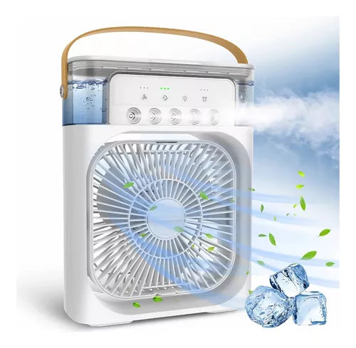 Refresca tu Ambiente, Mejora tu Comodidad¿Buscas un respiro fresco y una atmósfera agradable en casa? El Ventilador con Humidificador es la solución perfecta. Combina la potencia de un ventilador y el efecto relajante de la humidificación, ayudándote a mantener el aire fresco y cómodo en cualquier momento. Perfecto para los días calurosos, elimina el bochorno y mantiene el ambiente ideal para trabajar, relajarte o dormir.¿Qué hace especial a nuestro Ventilador con Humidificador?Refrescamiento 2 en 1: No es solo un ventilador, también es un humidificador que mantiene el aire fresco e hidratado, evitando el ambiente seco. Fácil de Ajustar: Puedes personalizar la intensidad y nivel de humidificación para adaptarse a cualquier situación.Diseño Compacto y Elegante: Ocupa poco espacio y se adapta a cualquier ambiente, desde la oficina hasta el dormitorio.Olvídate del calor y el aire seco: Mantén tu hogar fresco y cómodo, ideal para quienes buscan un descanso del calor sin instalar un aire acondicionado o consumir tanta energía. Con nuestro Ventilador con Humidificador, disfrutarás de un ambiente refrescante y saludable en todo momento.
